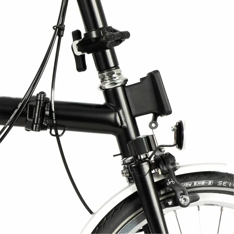 Saddle: Brompton saddle with integrated carry handle (147mm). Incorporates a mount for a Brompton rear light and saddle bag.