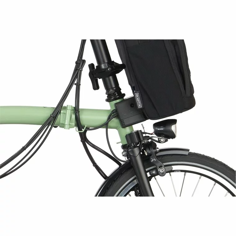 The compact Brompton Electric 300wh lithium-ion battery packs in the power. And when it comes to charging, it’s as easy as plugging in your phone. Remove the battery pack (2.9 kg including bag) with one quick click. Plug into any regular socket. Fully charge in 4 hours. Boost for less if you’re short on time.
