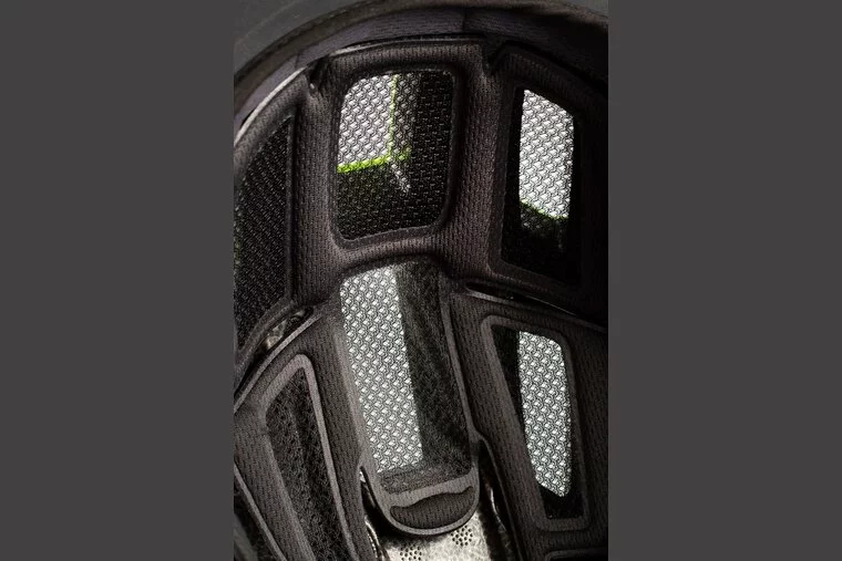 To further increase the visibility of this helmet, the rear shell has been painted using a reflective lacquer.