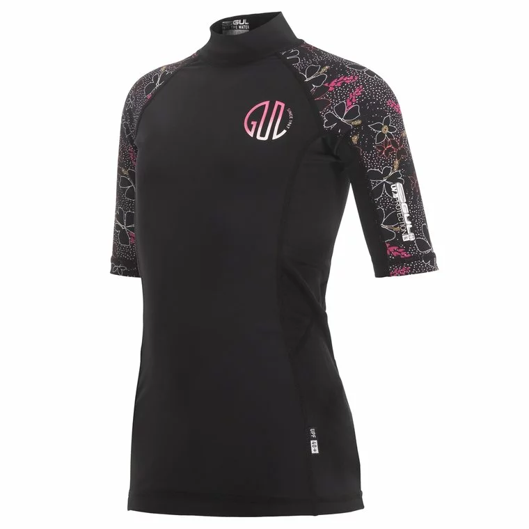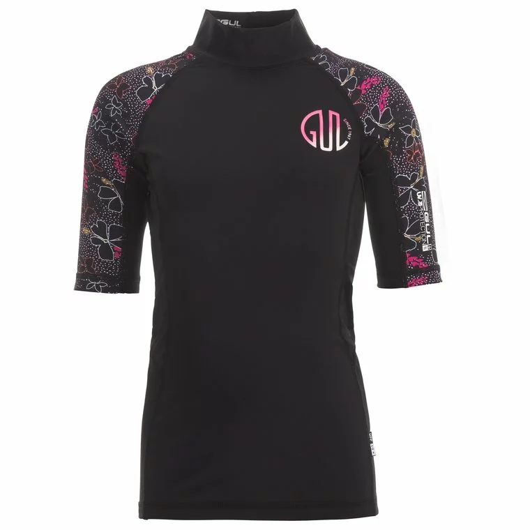 GUL Short Sleeve Girls Rash Vest-Black/Print