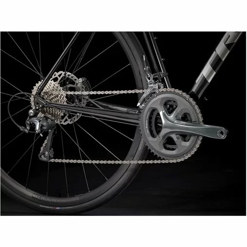 A 2×10 (20 speed) Shimano Tiagra drive train has a wide range of gears for riding on any terrain. The lightweight aluminium frame has mudguard mounts and a stable Endurance Geometry for a confident ride and a carbon fork that absorbs road vibration. Plus, tubeless-ready rims and hydraulic disc brakes for stopping power in any conditions. A solid, comfort-first road bike with upgrades on the parts that matter – like the drive train and brakes. Domane AL 4 Disc is built for miles of fun, fast riding on the road and even light gravel.